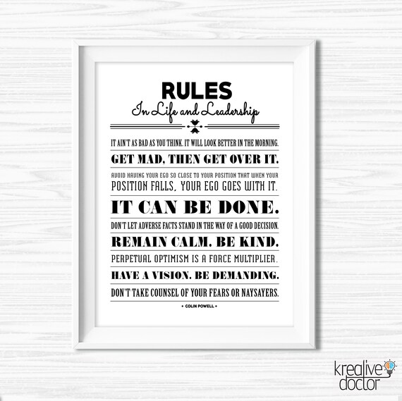 Colin Powell S 13 Rules Of Leadership Military Enlistment Etsy Leadership Leadership Activities Motivational Wall Art